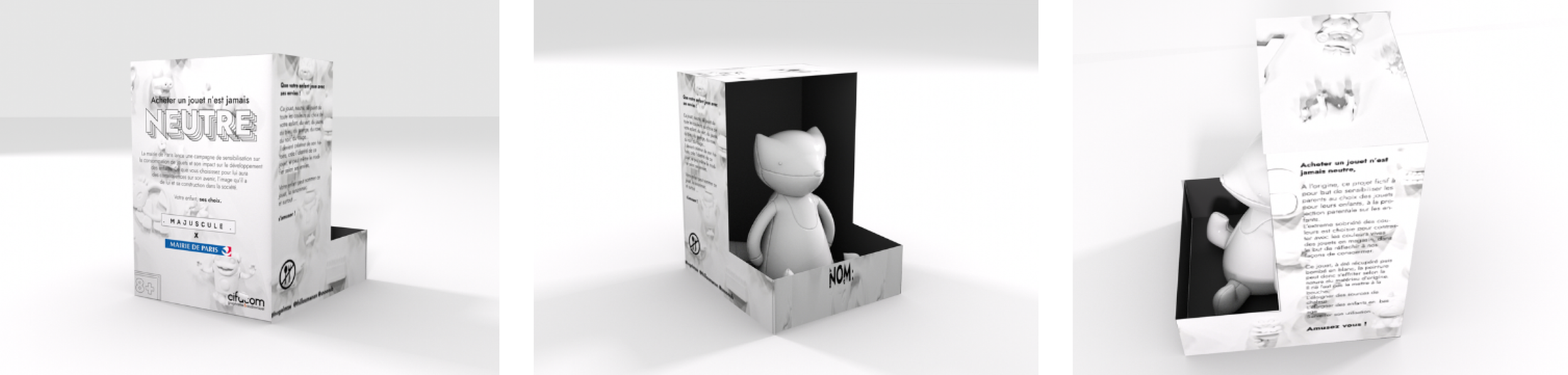Packaging et affiche de jouets non genrés (collab avec Hugo Lamaze et Maxime Charlois)
